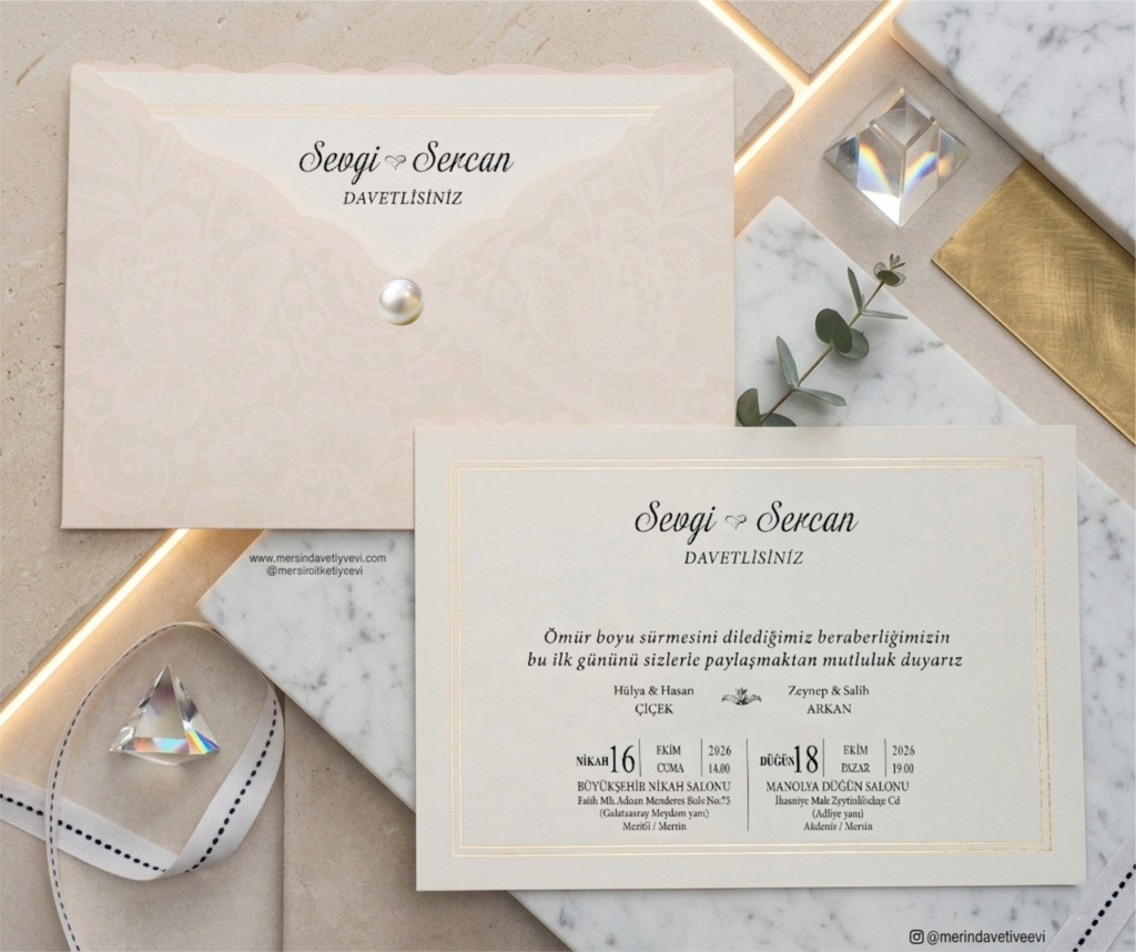 Mersin Davetiye Evi’nin Müşterilerine sunduğu VİP Davetiye kataloğu stoklarla sınırlıdır. Tüm davetiye resimlerinin altında Davetiye kodu ve Stok miktarı yazılmaktadır.